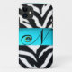 COQUES Case-Mate iPhone NOIR ZEBRA FOUR TURQUOISE AQUA BLEU GEM MONOGRAM,