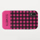 Ce boîtier téléphonique est noir et rose plaid / buffalo vérifier avec un nom que vous pouvez personnaliser.