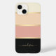 Un Coque-Mate iPhone 14 Coque, un script moderne élégant et élégant, avec un large design rayé coloré et doré avec Boss Girl Chic couleurs de crème, pêche, blush et noir. Personnalisez facilement ce coque monogramme avec votre propre nom pour en faire votre propre.