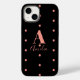 Coques Case-Mate iPhone Nom du monogramme Rose noir Pois or