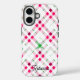 Festive Plaid Motif nom iPhone 16 Coque. Personnalisez avec votre nom/initiale/monogramme.