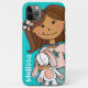 Joli coque graphique moderne filles. Cheveux foncés et peau foncée fille accrochant son petit lapin blanc chanceux. Personnalisez avec votre propre nom jusqu'à 7 lettres actuellement lit Melissa. Design original par Sarah Trett.