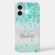 Coques Case-Mate iPhone Nom monogramme vert de parties scintillant turquoi