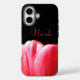 Protégez votre iPhone et soyez élégant tout en le faisant avec cette couverture arrière - plan noire avec une fleur de tulipe colorée rose peinte qui semble monter d'en bas. Prêt à être customisé avec votre nom.