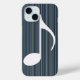 Une note musicale blanche et graphique avec un motif à bandes minces derrière