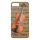 Un cas fait sur commande de téléphone pour le violoniste ou le mélomane, il montre une belle image photographique d'un violon sur un arrière - plan brun clair avec les notes musicales imprimées là-dessus pour un regard vintage de musique de feuille. Un secteur de modèle est inclus pour votre nom ou texte personnalisé.