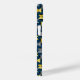 Ce boîtier téléphonique a un design moderne du milieu du siècle des ovales dans la marine avec des demi-cercles dans les tons jaune et gris dans eux sur un champ de noir.