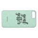 Ce coque élégant est décoré d'un arrière - plan vert menthe tendance avec des pois blancs, et de l'expression "but getter" dans la typographie moderne. Personnalisez avec votre nom.