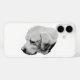 Le profil du Labrador, adouci en nuances de gris, crée un coque protecteur avec un poids émotionnel tranquille. Un design qui ressemble plus à un compagnon qu'à un accessoire.
