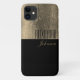 Métallique, vieux or, texture rugueuse en combinaison avec le noir et avec le nom personnalisé. Simple, moderne, contemporaine, coque iphone de luxe.