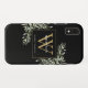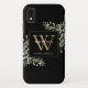 Elégante aquarelle verdure feuille monogramme de nom étui de téléphone avec un monogramme d'or initial sur un arrière - plan noir chic. Conçu par Thisisnotme©