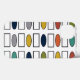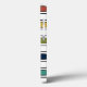 Ce boîtier téléphonique a un design moderne du milieu du siècle de rectangles et ovales répétitifs dans les couleurs rétro.