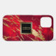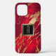 Cette boîte de téléphone brillante en rouge et or semble presque brillant! Il présente votre monogramme en or au centre d'une bannière noire carré doublée d'or brillant. La banderole est placée sur un arrière - plan rouge vif à dégradé qui semble avoir été tassée de peinture dorée métallique. Unique et très attrayant ! *Veuillez noter que l'aspect métallique est simulé, et le coque ne contient pas de peinture métallique, mais seulement l'image.