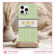 Communiquez avec style grâce à cette jolie coque de téléphone qui présente un motif classique de gingham vert, de jolies fleurs roses et jaunes, des pois ludiques et un monogramme personnalisable. Modifiez le nom pour créer un cadeau unique pour les femmes de tous âges. Parfait pour les anniversaires, les fêtes ou toute occasion spéciale.
