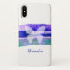 Ce coque présente des traits d'aquarelle dans les tons violet, indigo et turquoise avec une silhouette de papillon. Personnalisez ce coque avec un nom. Cette conception est également disponible sur une gamme d'autres produits. Visitez la page de collection de notre magasin pour voir la gamme complète de produits que vous pouvez personnaliser.