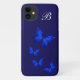 Étui pour smartphone iPhone avec papillon monogramme pour filles mignonnes conçu avec de beaux papillons à ailes bleues inspirés de la nature et monogramme initial que vous pouvez personnaliser en ligne.