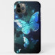Fabuleux, brillant, bleu et jaune, papillon de nuit sur arrière - plan foncé.