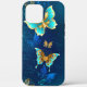 Coques Case-Mate iPhone Papillons d'or sur un Arrière - plan bleu