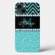 Coques Case-Mate iPhone Parties scintillant AQUA CHEVRON NOIR MONOGRAM