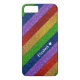 Ajoutez une touche brillante à votre téléphone avec ce coque iphone personnalisé rayé à parties scintillant arc-en-ciel brillant et brillant. Le boîtier du téléphone alterne les rayures de parties scintillant rouge, jaune, vert, bleu et violet. Ajoutez votre nom et un coeur pour une touche personnelle (ou retirez, selon votre préférence). Ce boîtier téléphonique est idéal pour tout enfant ou adulte qui aime les choses amusantes et colorées! Cette étui téléphonique fait un grand cadeau d'anniversaire, de Noël ou d'autres vacances personnalisées!