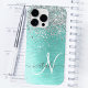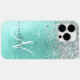 Personnalisez facilement ce design branché de boîtier de téléphone chic avec une jolie parties scintillant brillante en argent sur un arrière - plan métallique brossé turquoise.