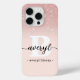 Parties scintillant en or rose à l'ombre scintillante monogrammed Phone Case. Facile à customiser stylisée, moderne et mignonne calligraphie de script typographie monogramme. Parfait pour Noël et un anniversaire, ou pour des cadeaux monogrammés !