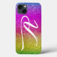 Personnalisable, Coques iphone Monogrammes personnalisés. Hipster mignon rose brillant Parties scintillant Magenta Rainbow iPhone 13 Coque. Une idée-cadeau pour vous-même et vos proches. Électronique > Boîtes de téléphone, chargeurs, chargeurs et accessoires > coques iphone > iPhone 13 Coques. Parties scintillant Magenta rose pâle Rainbow Monogram iPhone 13 Coque