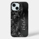 Personnalisez facilement ce boîtier de téléphone à motif de parties scintillant en métal brossé noir et glamour avec votre propre nom personnalisé.