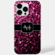 Parties scintillant rose foncé brillant scintille le Coque-coque iphone Monogram. Personnalisez avec votre initiale et votre nom. De belles parties scintillant roses brillantes et girly brillent. Photo de rose étincelle pas de parties scintillant !