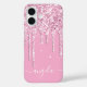 Faux parties scintillant rose pâle éclatante sur la coordination de couleurs solides personnalisables. La signature girly moderne dispose d'une élégante police de calligraphie blanche avec queues décoratives. Customisez les styles de police pour créer votre propre équipement téléphonique.
