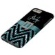 Le motif sophistiqué, girly, décoré d'un monogramme de ceci de noir et de turquoise de parties scintillantes de chevron, avec un ruban en soie et des diamants est une photo IMPRIMÉE SUR UNE SURFACE PLANE. Conception d'Elke Clarke©. La conception se compose des lignes d'un chevron de zigzag avec l'effet de parties scintillantes, une copie d'un ruban de satin de bleu de turquoise avec un bijou de diamant. Vous pouvez ajouter votre initiale et nom de monogramme dans les polices magnifiques de manuscrit. Vous pouvez devoir choisir la "personnaliser il" pour ajuster l'espacement si vous choisissez une lettre différente de monogramme. Graphiques autorisés pour l'usage. Concepteur de contact pour d'autres couleurs d'arrière - plan.
