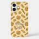 Pretzels et autres snacks salés cuits au four. Motif sans couture. Couleur arrière - plan personnalisée. Texte personnalisé.
