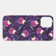 Un étui téléphonique avec une adorable motif à thème Halloween. Chats en casquette sorciers, assis sur des citrouilles roses avec des toiles violettes dans l'arrière - plan.