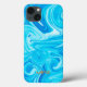 Motif de peintures marbrées dans les tons Bleus avec nom personnalisé en orange. Facile à personnaliser le texte, la couleur du texte, la police. Grand Tech pour n'importe quel sport nautique, nageur, surfer, Beach Lover, île de vacances Souvenir. Moderne, Artiste, Colorul. Mélangez et associez des peintures marbrées entières / collections d'art Abstraites de TMCdesigns.