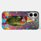 Boîtier téléphonique dynamique avec perroquet avec lunettes de soleil et casquette de fête au milieu des confettis en chute. Parfait pour les fêtes et amoureux des animaux amusants.