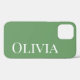 Magnifique coque iphone de couleur verte avec un nom de typographie moderne blanc en blanc. Un look simple et simple. Zazzle offre 100% de service à la clientèle et de satisfaction ou votre argent de retour.