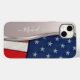 USA flag fausse courbe métallique avec The Stars and Stripes drapeau américain design moderne pour protéger votre téléphone. Montrez que vous aimez les États-Unis d'Amérique avec ce design sur votre téléphone qui dispose effet métal tourbillon avec effet or rose brossé métal pour votre nom.