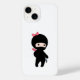 La mignonne fille de dessin animé ninja est habillée tout en noir mais pour un arc rose sur son masque de tête. Le katana d’épée japonaise traditionnel peut être vu attaché sur son épaule, sa poignée est également rose.