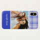 Coques Case-Mate iPhone Photo personnalisée Nom bleu blanc Plaid 2