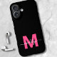 Magenta Hot Pink Noir Script personnalisé Boîtier téléphonique Monogramme initial. Ajoutez une touche audacieuse et vibrante à votre téléphone grâce à ce boîtier téléphonique chic et personnalisé. Doté d'un arrière - plan noir épuré, d'une initiale rose chaud magenta audacieuse et d'un nom de script blanc fluide, ce design offre un look amusant et féminin avec une pointe moderne. Parfait pour les soeurs de sororité, les étudiants, ou toute personne qui aime un style ludique mais élégant, cette étui téléphonique fait un cadeau réfléchi pour les anniversaires, les vacances, ou toute occasion spéciale. Pratique, personnalisée et pleine de personnalité, cette étui téléphonique est le moyen idéal pour élever vos accessoires de tous les jours.