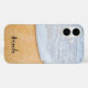 Un étui téléphonique avec une photo d'une plage de sable brun doré au surf mousse blanc.