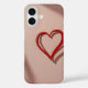 Élégant étui téléphonique romantique avec contour de coeur rouge minimaliste sur un arrière - plan pastel doux. Parfait pour les amoureux d'amour et de couples.