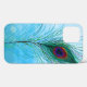 Élégant étui de plumes de paon dessiné à la main bleu, violet, bleu et vert turquoise.