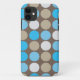Un iphone moderne coloré 11 coque avec mon art abstrait original, vectoriel & design. Cet iphone 11 coque a un motif géométrique d'art graphique moderne de points/cercles avec des nuances de bleu turquoise, marron et blanc cassé. Couvrez votre iphone en style avec ce motif bleu et marron 11 coque!