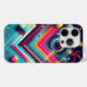 boîtier de téléphone géométrique dynamique avec des formes néon sur un arrière - plan noir élégant. parfait pour un look rétro futuriste audacieux.