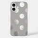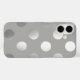 Pois gris et argent, étui de téléphone portable. Conception par Caroline Leskiw