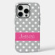 Un joli design de pois gris avec rose est présenté sur ce coque iphone préppy. Personnalisez facilement avec votre nom !