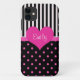 Cute, douce et cool forme de coeur rose, pois rose, noir et blanc bandes graphiques design. Pour elle - fille, fille, amie, mère, tante, grand-mère, soeur, femme, femme, femme, femme. Choisissez un autre style de téléphone, cliquez sur la PERSONNALISER jaune et choisissez dans le menu déroulant pour sélectionner dans iPhone 3S, 4S, 5S; Samsung Galaxy S2, S3, Nexus; iPod Touch; HTV Vivid; Motorola Razr; Blackberry Bold 9700/9780.