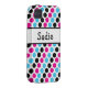 Coques Case-Mate iPhone Pois rose, bleu, et noir avec la plaque