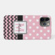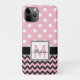 Pois rose et chevron, et noir iPhone 11 Pro coque mobile qui peut être personnalisé avec votre monogramme.